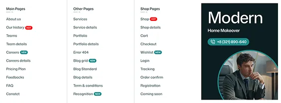 Build faster with 27+ Pre-Made inner page layouts